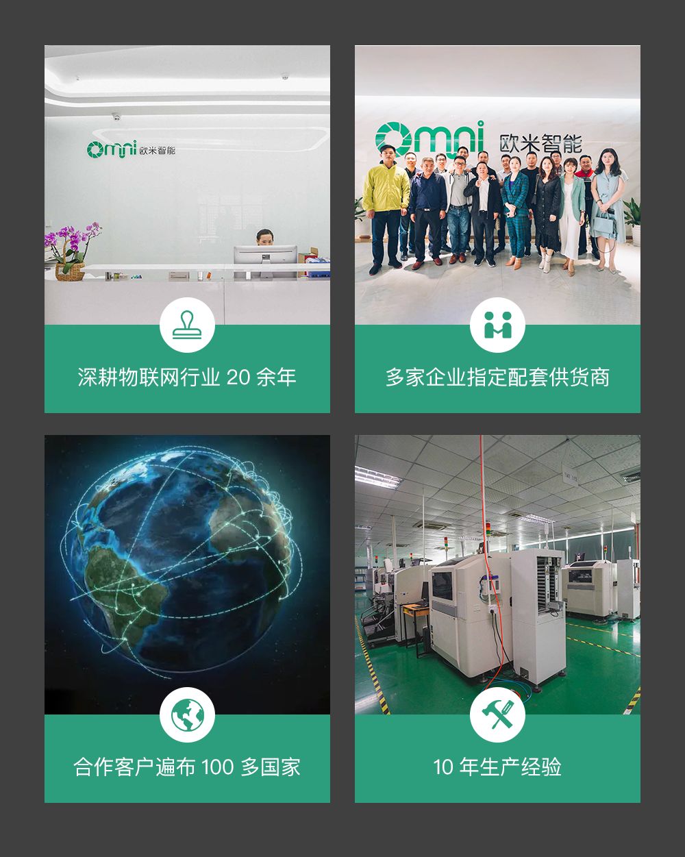 深圳歐米智能科技有限公司位于廣東省深圳市龍崗區南灣街道布瀾路21號聯創科技園3期31棟11樓,是一家專注于物聯網核心技術研發及應用的國家級高新技術企業。