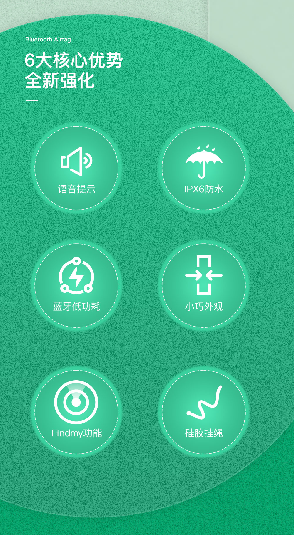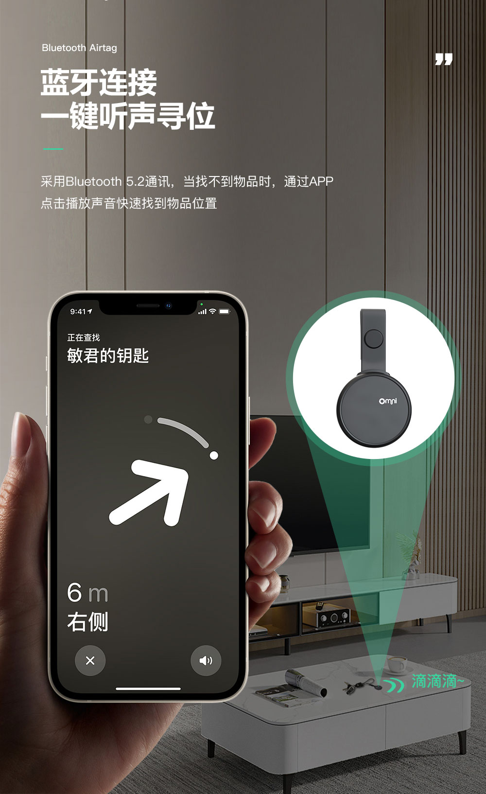 防水功能:歐米藍(lán)牙物品定位器防水等級(jí)達(dá)到IPX6防水,可以小雨中正常使用,具有更好的耐用性。